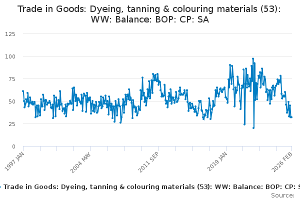Download this time seriesTrade in Goods: Dyeing, tanning & colouring materials (53): WW: Balance: BOP: CP: SA