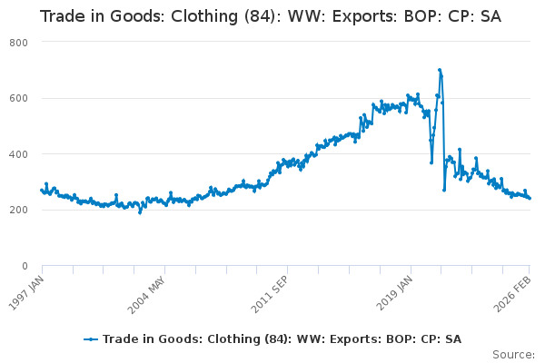 Download this time seriesTrade in Goods: Clothing (84): WW: Exports: BOP: CP: SA