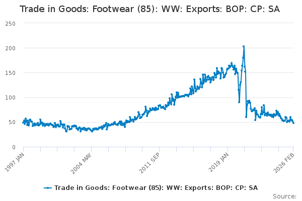 Download this time seriesTrade in Goods: Footwear (85): WW: Exports: BOP: CP: SA