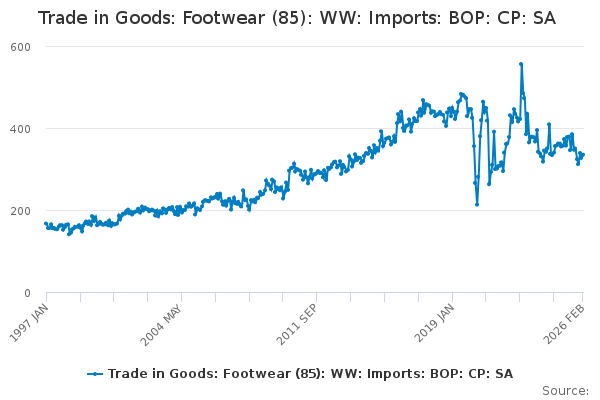 Download this time seriesTrade in Goods: Footwear (85): WW: Imports: BOP: CP: SA