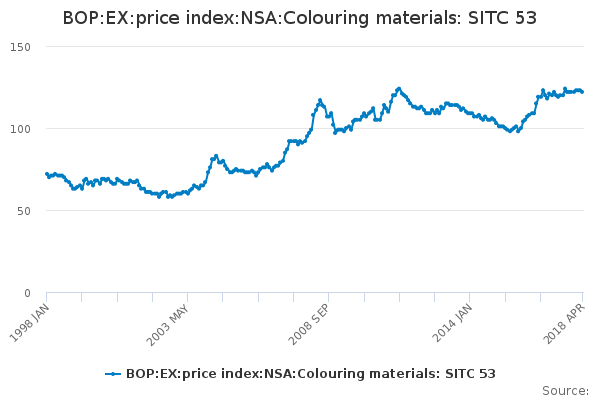 Download this time seriesBOP:EX:price index:NSA:Colouring materials: SITC 53