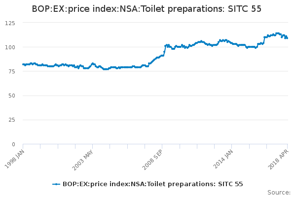 Download this time seriesBOP:EX:price index:NSA:Toilet preparations: SITC 55