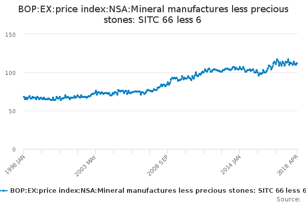 Download this time seriesBOP:EX:price index:NSA:Mineral manufactures less precious stones: SITC 66 less 6