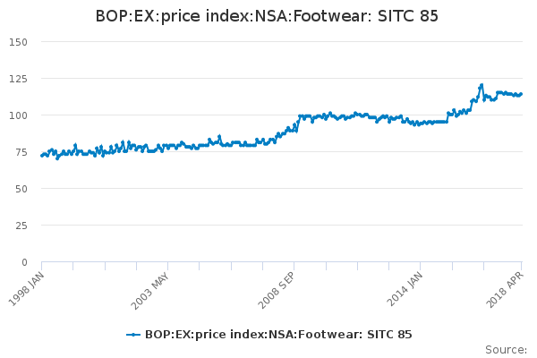 Download this time seriesBOP:EX:price index:NSA:Footwear: SITC 85