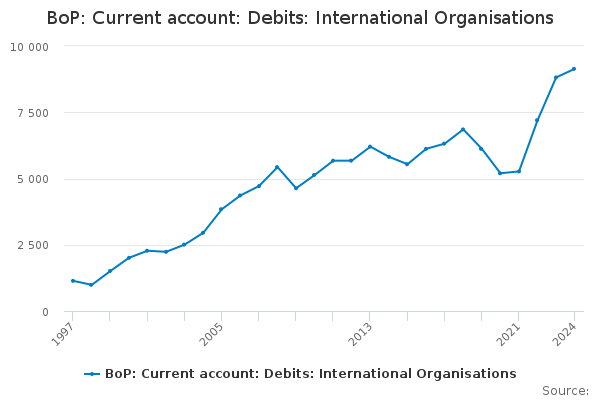 Download this time seriesBoP: Current account: Debits: International Organisations
