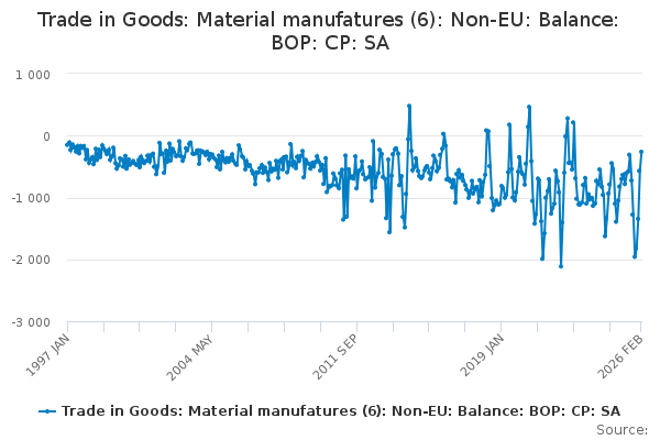 Download this time seriesTrade in Goods: Material manufatures (6): Non-EU: Balance: BOP: CP: SA