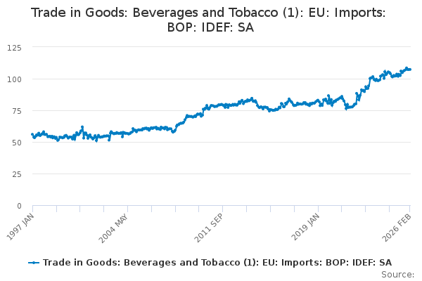 Download this time seriesTrade in Goods: Beverages and Tobacco (1): EU: Imports: BOP: IDEF: SA