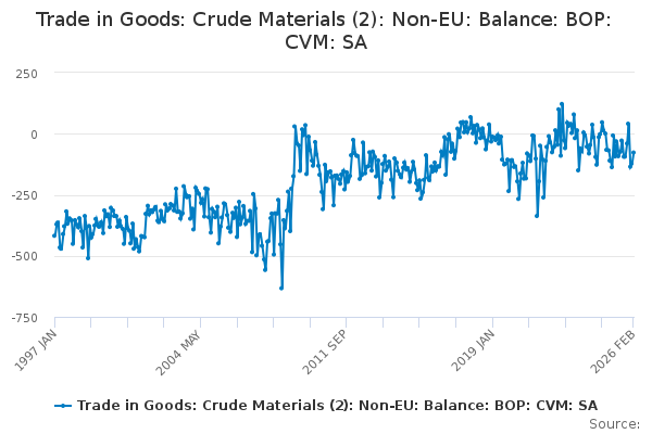 Download this time seriesTrade in Goods: Crude Materials (2): Non-EU: Balance: BOP: CVM: SA