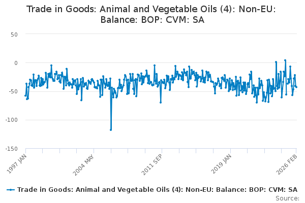 Download this time seriesTrade in Goods: Animal and Vegetable Oils (4): Non-EU: Balance: BOP: CVM: SA