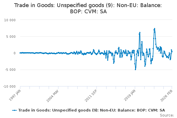 Download this time seriesTrade in Goods: Unspecified goods (9): Non-EU: Balance: BOP: CVM: SA