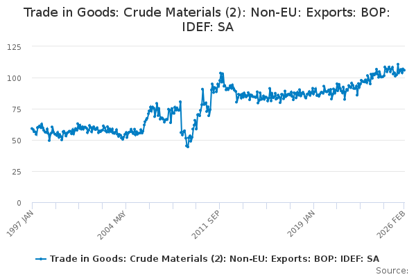 Download this time seriesTrade in Goods: Crude Materials (2): Non-EU: Exports: BOP: IDEF: SA