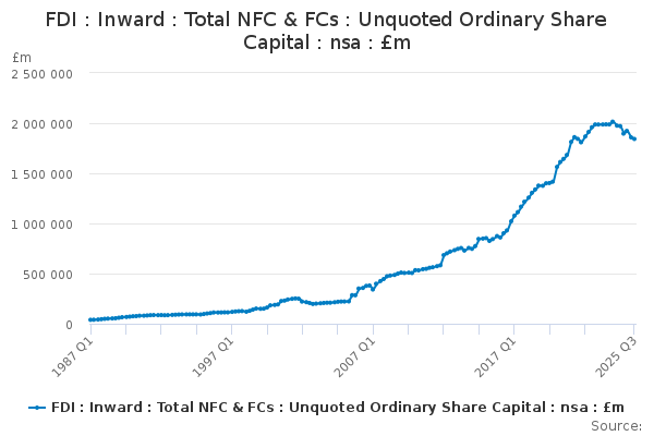 Download this time seriesFDI : Inward : Total NFC & FCs : Unquoted Ordinary Share Capital : nsa : £m