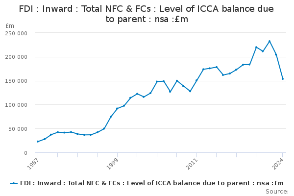 Download this time seriesFDI : Inward : Total NFC & FCs : Level of ICCA balance due to parent : nsa :£m