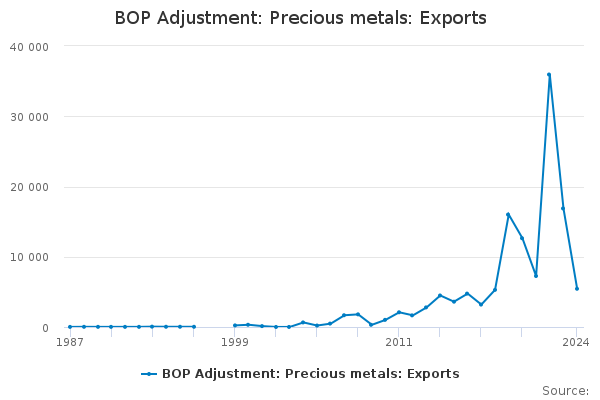 Download this time seriesBOP Adjustment: Precious metals: Exports