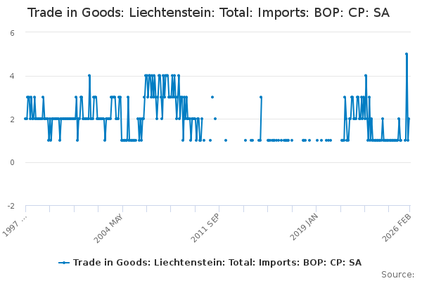 Download this time seriesTrade in Goods: Liechtenstein: Total: Imports: BOP: CP: SA