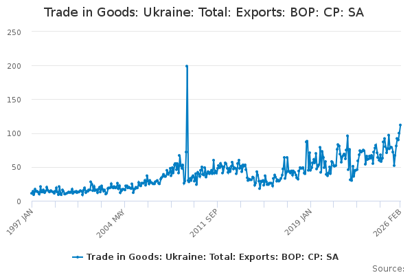 Download this time seriesTrade in Goods: Ukraine: Total: Exports: BOP: CP: SA