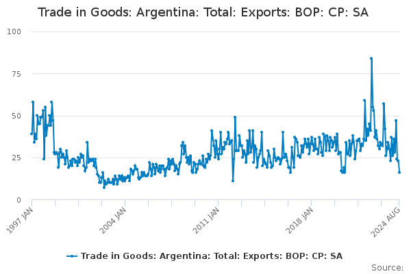 Download this time seriesTrade in Goods: Argentina: Total: Exports: BOP: CP: SA