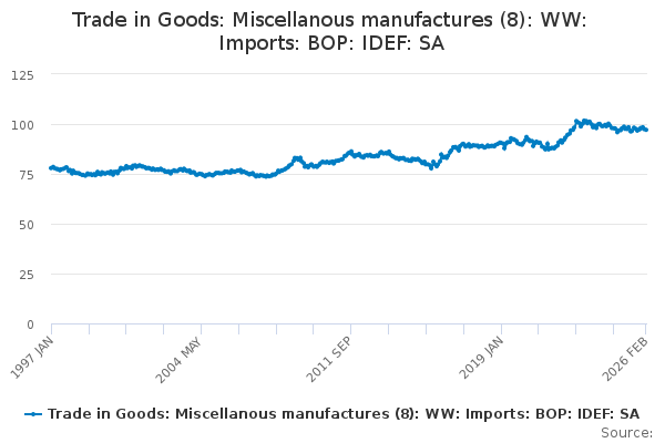 Download this time seriesTrade in Goods: Miscellanous manufactures (8): WW: Imports: BOP: IDEF: SA
