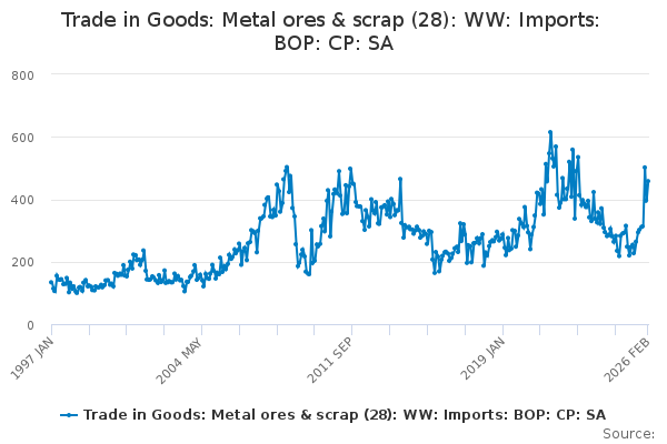Download this time seriesTrade in Goods: Metal ores & scrap (28): WW: Imports: BOP: CP: SA