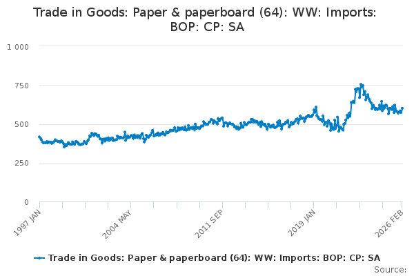 Download this time seriesTrade in Goods: Paper & paperboard (64): WW: Imports: BOP: CP: SA