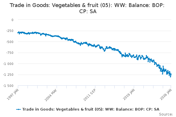 Download this time seriesTrade in Goods: Vegetables & fruit (05): WW: Balance: BOP: CP: SA