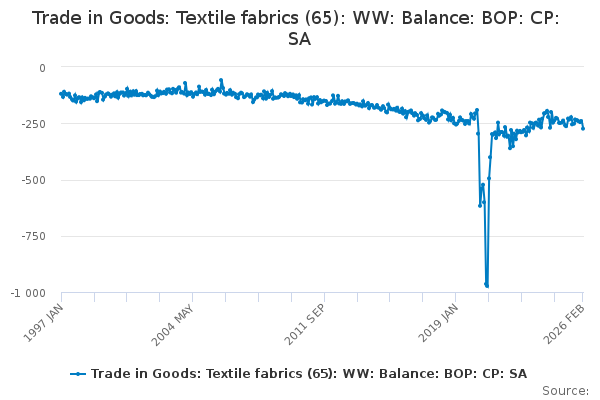 Download this time seriesTrade in Goods: Textile fabrics (65): WW: Balance: BOP: CP: SA