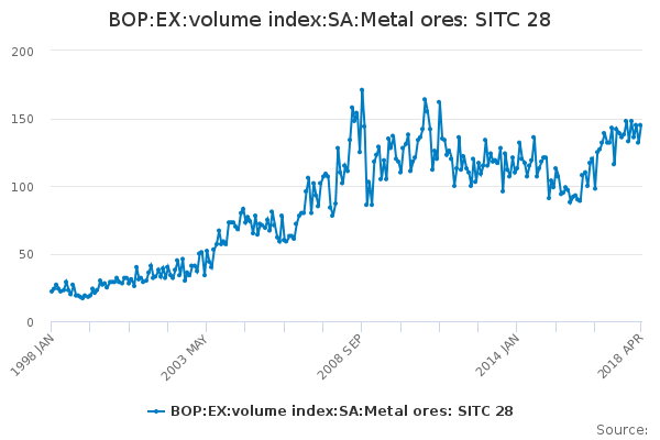 Download this time seriesBOP:EX:volume index:SA:Metal ores: SITC 28