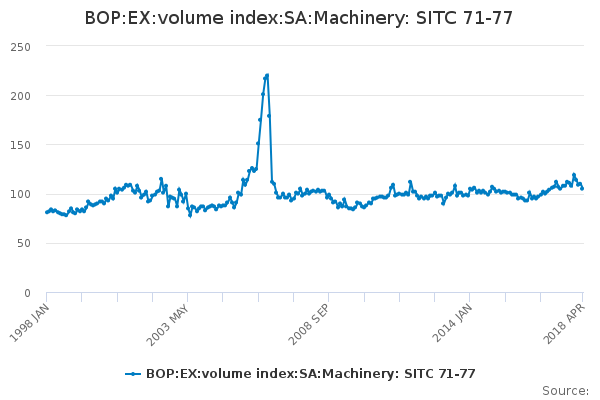 Download this time seriesBOP:EX:volume index:SA:Machinery: SITC 71-77