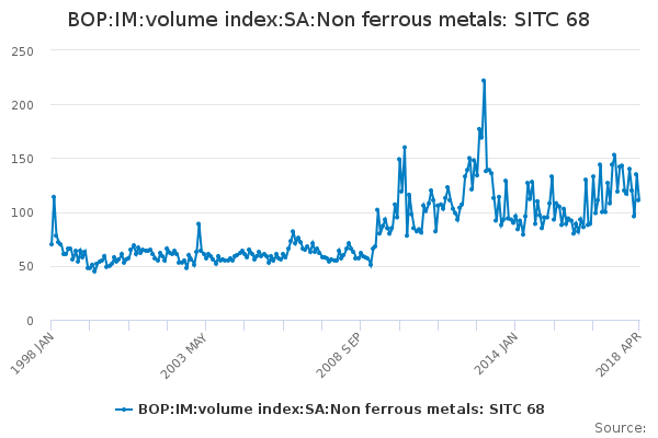 Download this time seriesBOP:IM:volume index:SA:Non ferrous metals: SITC 68