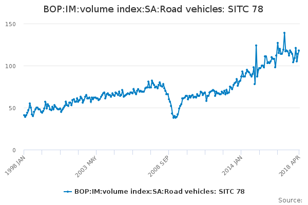 Download this time seriesBOP:IM:volume index:SA:Road vehicles: SITC 78