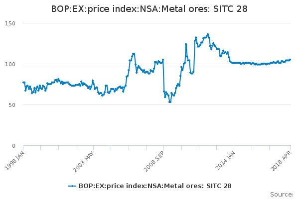 Download this time seriesBOP:EX:price index:NSA:Metal ores: SITC 28
