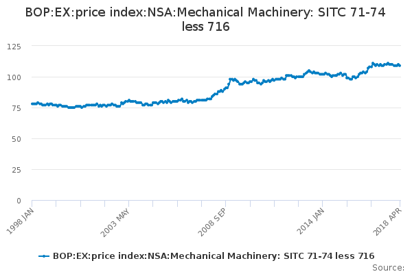 Download this time seriesBOP:EX:price index:NSA:Mechanical Machinery: SITC 71-74 less 716