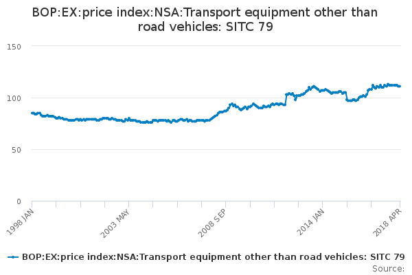 Download this time seriesBOP:EX:price index:NSA:Transport equipment other than road vehicles: SITC 79