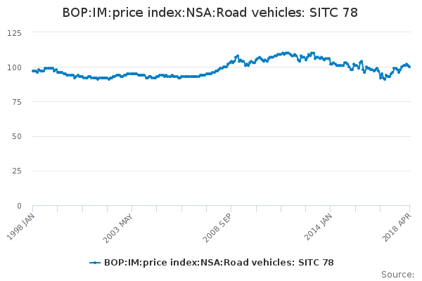 Download this time seriesBOP:IM:price index:NSA:Road vehicles: SITC 78