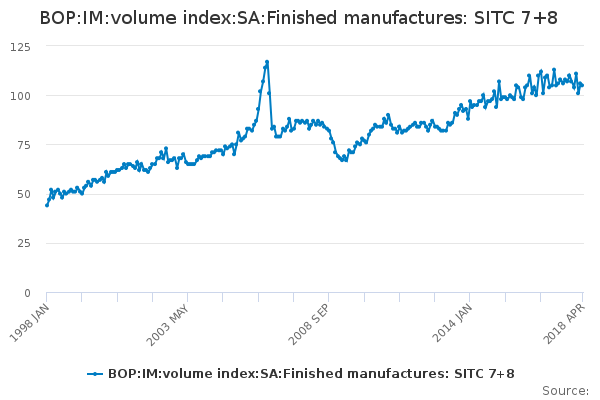 Download this time seriesBOP:IM:volume index:SA:Finished manufactures: SITC 7+8