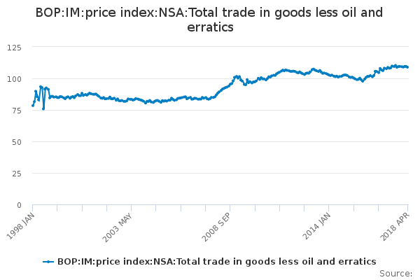 A small error in the trade in goods excluding oil and erratics import price indices occurred in the UK Trade: March 2018 publication tables and related time series dataset due to a processing error. The error impacted the trade in goods excluding oil and erratics import price index (series ELBA) for the period January 2018 to March 2018 in Table 3, the trade in goods excluding oil and erratics import price index growth rate in Table 4 and the trade in goods excluding oil and erratics import price indices for EU and non-EU (series SHCM and SHEB) in Table 6.