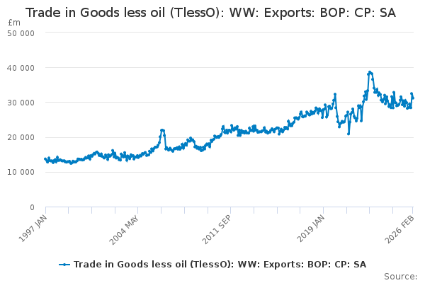 Download this time seriesTrade in Goods less oil (TlessO): WW: Exports: BOP: CP: SA