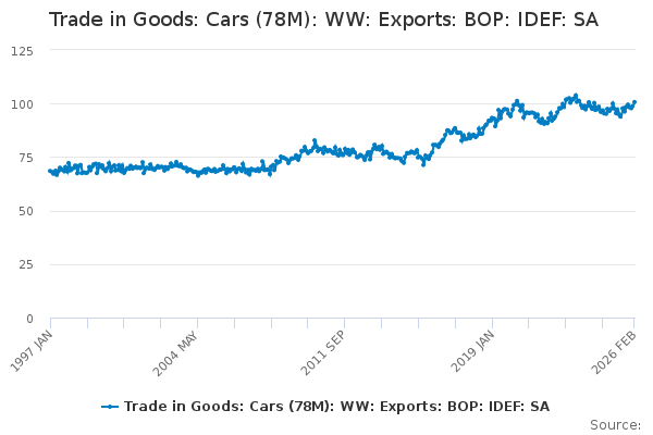 Download this time seriesTrade in Goods: Cars (78M): WW: Exports: BOP: IDEF: SA