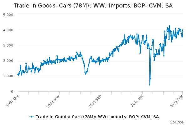 Download this time seriesTrade in Goods: Cars (78M): WW: Imports: BOP: CVM: SA