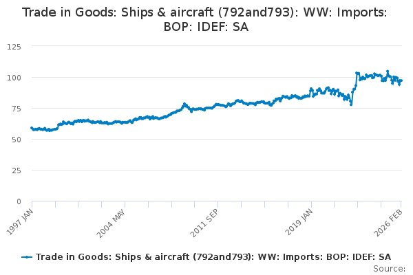 Download this time seriesTrade in Goods: Ships & aircraft (792and793): WW: Imports: BOP: IDEF: SA