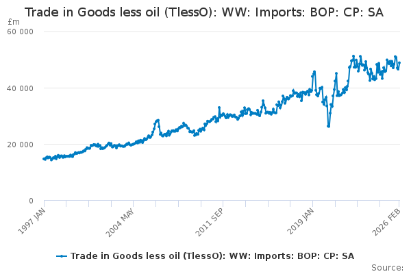 Download this time seriesTrade in Goods less oil (TlessO): WW: Imports: BOP: CP: SA