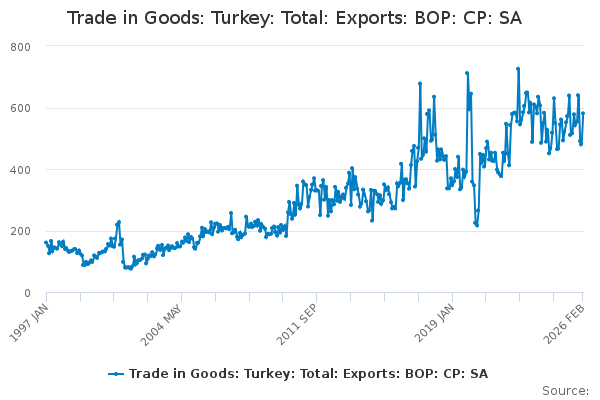 Download this time seriesTrade in Goods: Turkey: Total: Exports: BOP: CP: SA