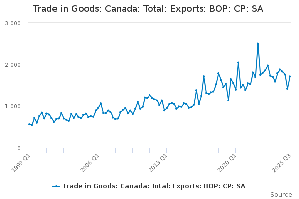 Download this time seriesTrade in Goods: Canada: Total: Exports: BOP: CP: SA