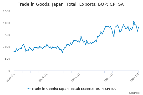 Download this time seriesTrade in Goods: Japan: Total: Exports: BOP: CP: SA
