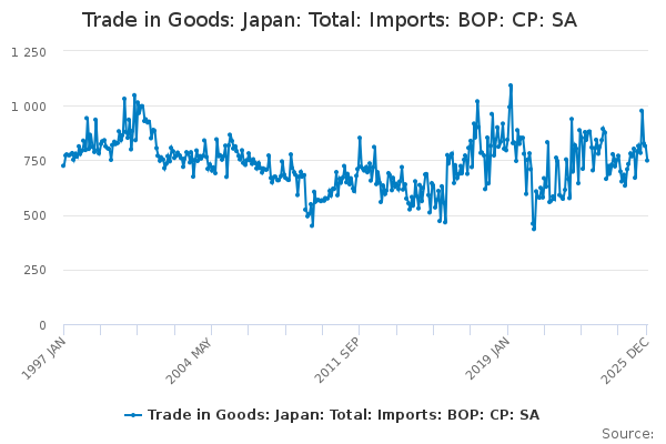 Download this time seriesTrade in Goods: Japan: Total: Imports: BOP: CP: SA