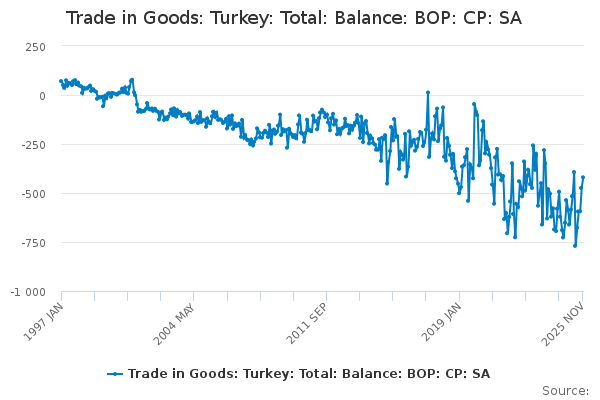 Download this time seriesTrade in Goods: Turkey: Total: Balance: BOP: CP: SA