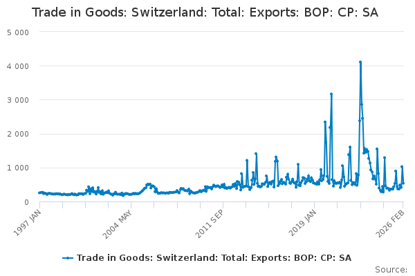 Download this time seriesTrade in Goods: Switzerland: Total: Exports: BOP: CP: SA