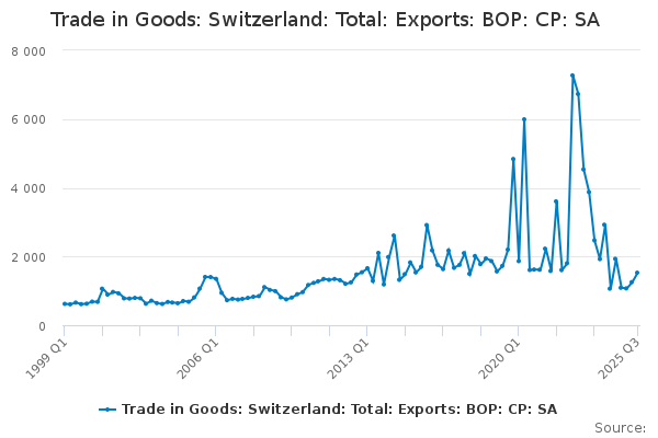 Download this time seriesTrade in Goods: Switzerland: Total: Exports: BOP: CP: SA