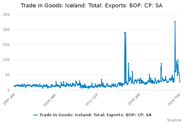 Download this time seriesTrade in Goods: Iceland: Total: Exports: BOP: CP: SA