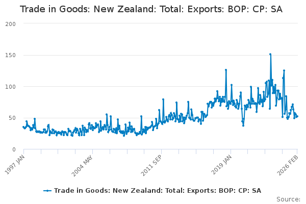 Download this time seriesTrade in Goods: New Zealand: Total: Exports: BOP: CP: SA